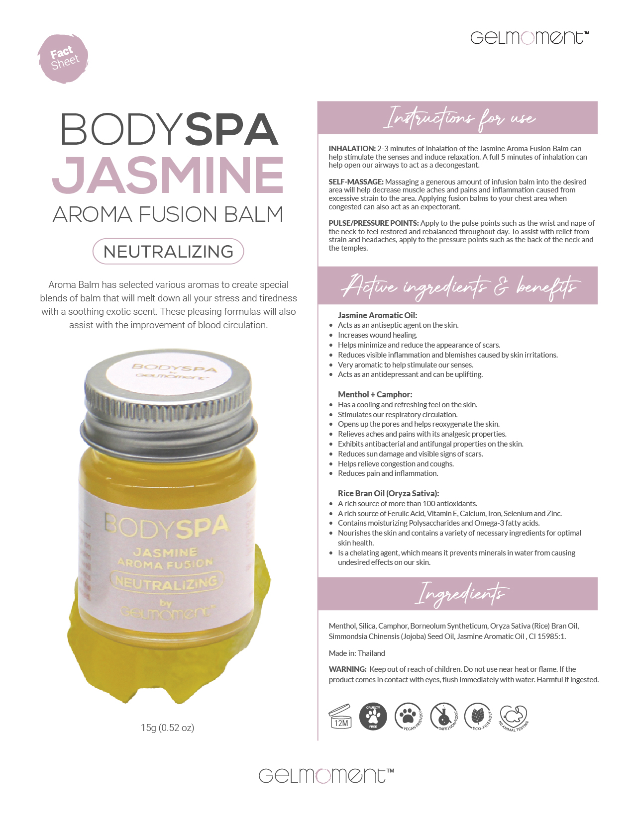Jasmine Aroma Balm has selected various aromas to create special blends of balm that will melt down all your stress and tiredness with a soothing exotic scent. These pleasing formulas will also help improve your blood circulation.